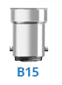 The Bayonet-Socket is a T-shaped socket with with vertical positioned pins on both sides. This socket is well known as the B15. Additionally there is also the B22 socket, referring to the Bayonet socket, which you only have to plug in and rotate for 180°.