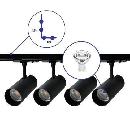 | Manufacturer Name | Complete L shaped 1-Phase Track Set Black incl. 4x Spot fixture + GU10 2700K 3W Dim - 1 x 1,5 meter | |