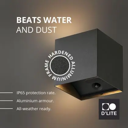 D'Lite Wall Light Elingen Aluminium Black Up & Down 2.9W 170lm - 830 Warm White | IP65 - Battery-Powered - Light Sensor