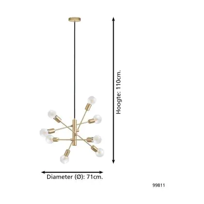 Eglo Pendant Gradoli 1 Steel Gold | IP20 - Suitable for 8x E27