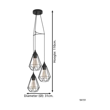 Eglo Pendant Tarbes Steel Black | IP20 - Suitable for 3x E27