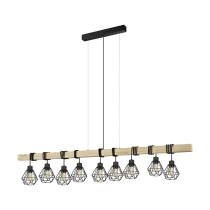 Eglo Pendant Townshend 5 Steel Wood Black | IP20 - Suitable for 9x E27