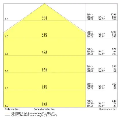 The number of lumens (lm) is the light output of a light source. The higher the number of lumens, the more light the light source emits. The wattage and the number of lumens are not connected to each other. An LED lamp with a low wattage can have a higher number of lumens than a conventional lamp with a high wattage.