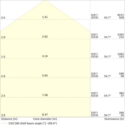 The Luminous Efficacy (lm/W) indicates how efficiently a light source uses energy. We divide the number of lumens by the wattage. The higher the number, the more efficient a product is in terms of energy consumption. LED lighting has a considerably higher lumen/Watt ratio than conventional lighting.