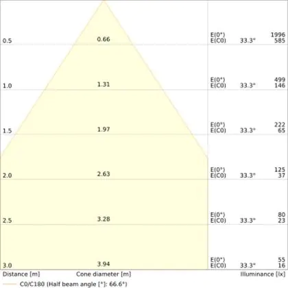 ![]() The colour code is a combination of colour rendering (CRI) and light colour (Kelvin). The first number indicates the colour rendering (1 = very poor colour rendering, 9 = maximum colour fastness). The second and third number contains the light colour. Example: the colour code 830 consists of good colour rendering (8) and warm white light (3000K). |