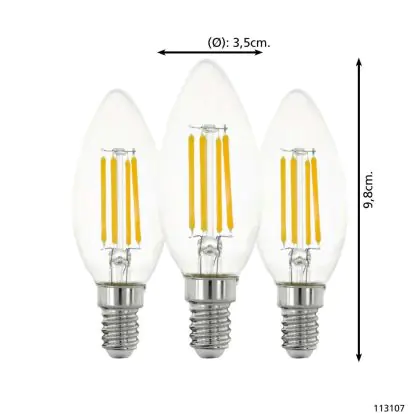 Multipack 3x Eglo LED Candle E14 Filament Clear 21W 806lm - 827 Extra Warm White | Replaces 60W