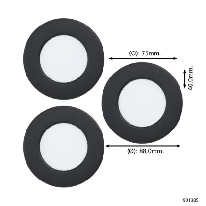 Multipack 3x Eglo Recessed Spot Fueva 6 Plastic Black 11.1W 1350lm - 827-840-865 CCT