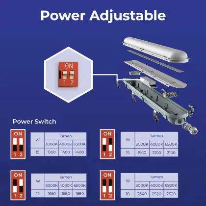 Multipack 4x Noxion LED Waterproof Batten Poseidon V3.0 10-18W 1300-2520lm - 830-865 CCT | 60cm - Through Wiring (5x2.5mm2)