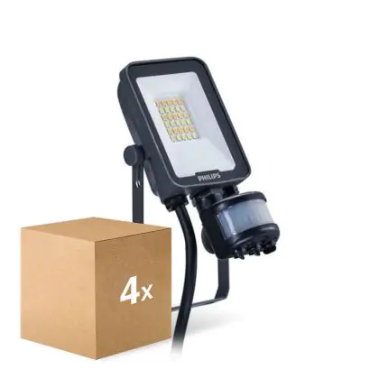Multipack 4x Philips LED Floodlight Ledinaire BVP167 10W 1200lm 110D - 830-840-865 CCT | IP65 - Motion and Light Sensor - Symmetrical