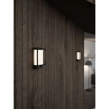 Nordlux Nestor Wall Light Aluminium Black 8W 550lm - 827 Extra Warm White | IP44 - Motion and Light Sensor
