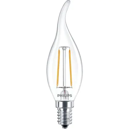 Philips Corepro LED Candle E14 Bent-tip Filament Clear 2W 250lm - 827 Extra Warm White | Replaces 25W