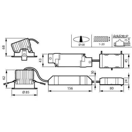 Cut out (mm) | 68 |